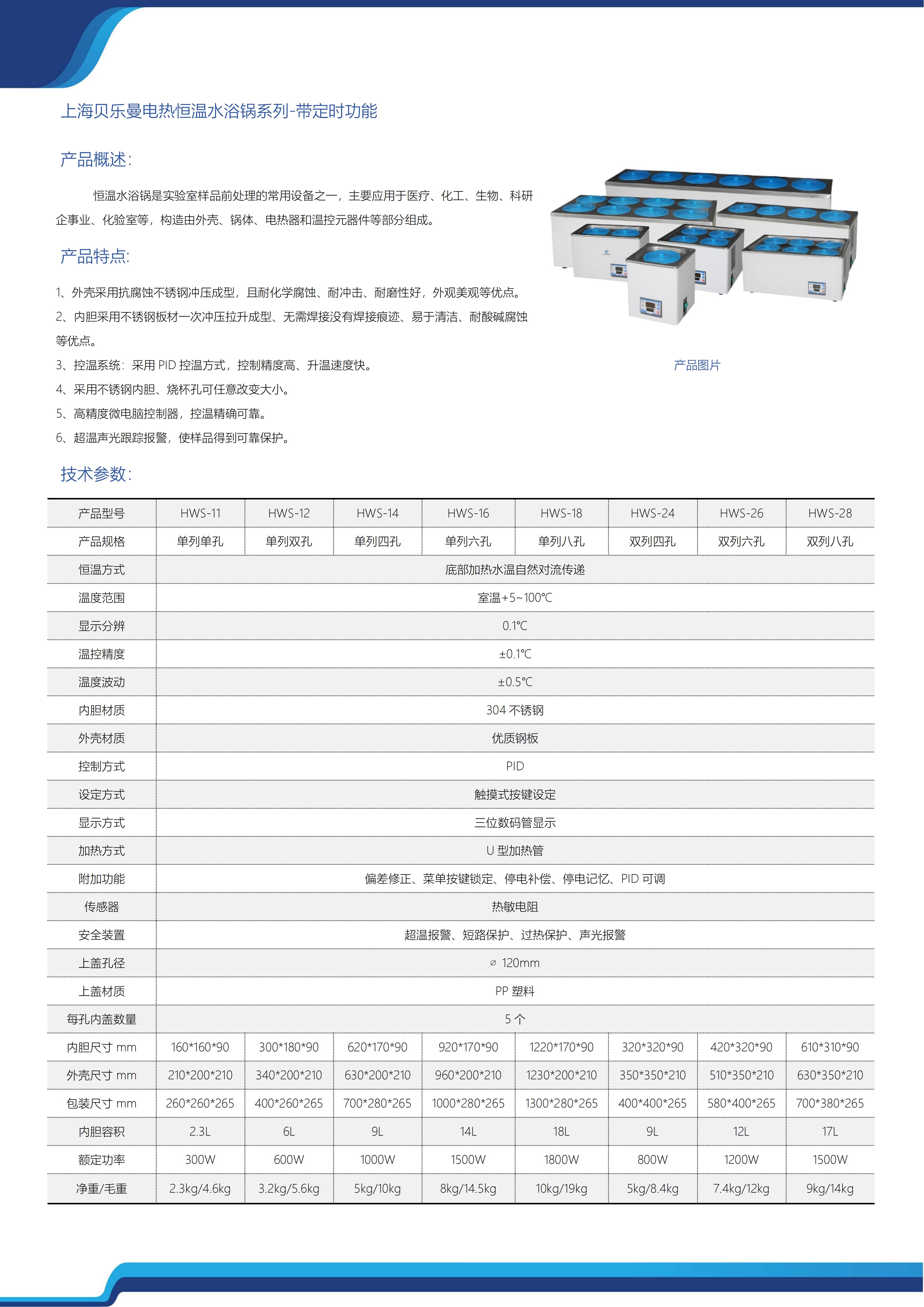 上海贝乐曼电热恒温水浴锅系列-带定时功能